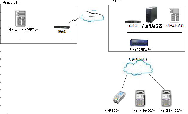 在本方案中,放置在保險公司的POS具備與銀行及保險公司同時進(jìn)行數(shù)據(jù)交互的能力,在進(jìn)行保險收費(fèi)時,先在POS上進(jìn)行保單查詢,查詢成功后進(jìn)行銀行卡支付,銀行卡支付完成后,POS將會通知保險系統(tǒng)保單支付成功,保險終端將會生成保單,完成交易。